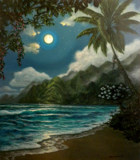 "Both sun and moon can be enjoyed on special days at the first lagoon in Ko Olina." | Brand New for 2011! "Pride of the West Side" - 36x54