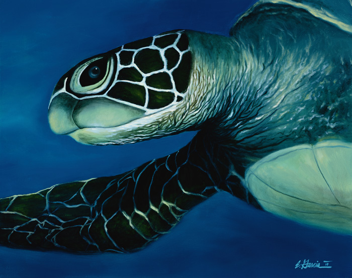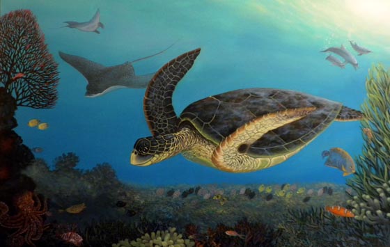 wanted this turtle to feel as if it were flying through the water as