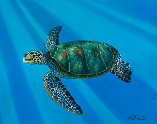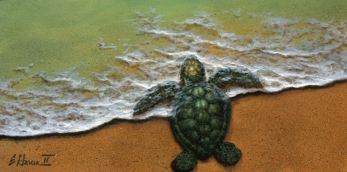"Meaning 'hope' in Hawaiian, Hawaii's honu