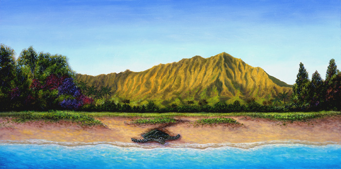 with texture in sand and turtles. Available in Ltd. Edition Giclee on