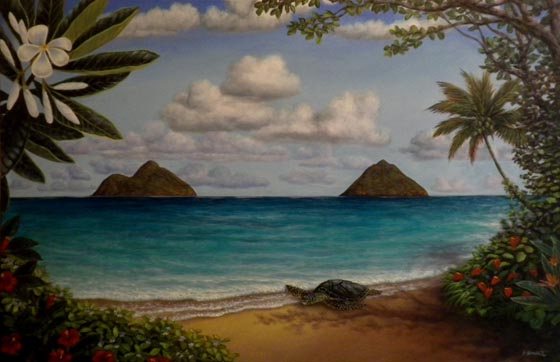 "Heaven in Lanikai" - 24x36 published original oil on canvas, available in 24x36 and 12x18 Ltd. Ed. Giclee on canvas. New for 2012!