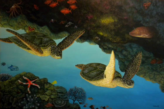 "I wanted to convey a feeling of movement as if you were inside the wave with the turtle."