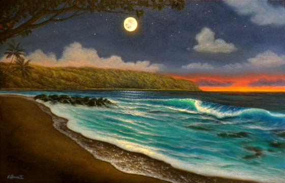 "Kailua Super Moon" - 12x18 original oil on canvas