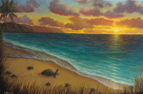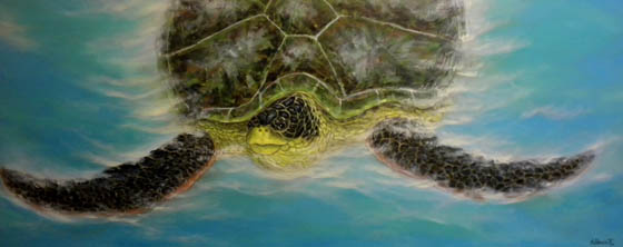 | Painted turtle & honu commission finish | "Blue Day, Bright Future" - 12x18 original oil on canvas