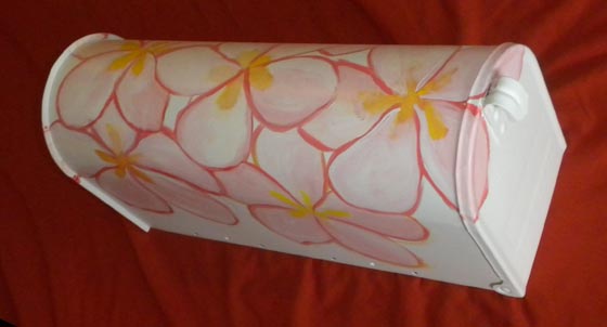 The first plumeria mailbox. Personalized with address of 616C on front door.